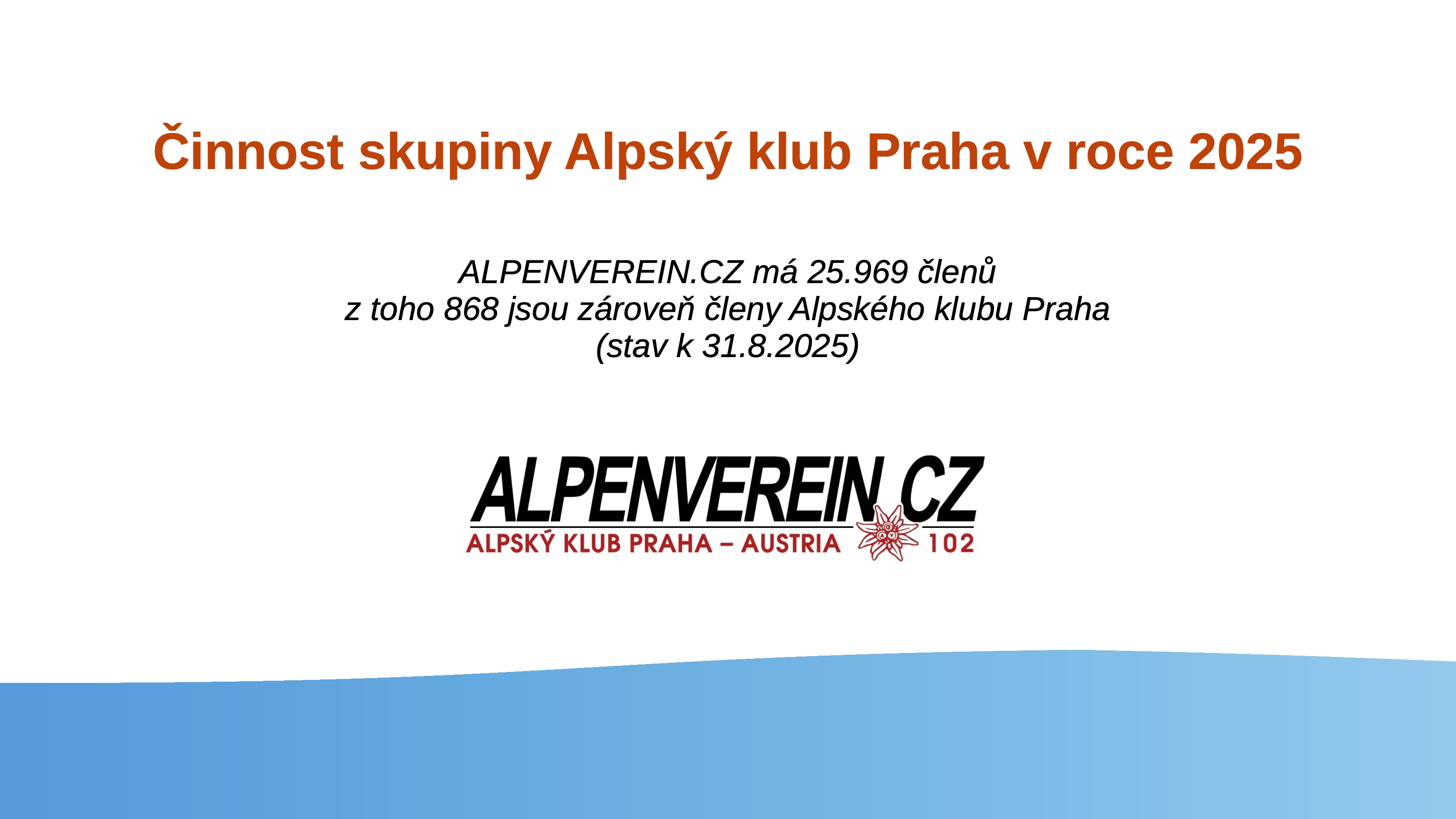 Od listopadu 2024, kdy se součástí on-line registračního systému ALPENVEREIN.CZ stala i nabídka členství ve skupině Alpenverein Austria – Alpský klub Praha, se k 31. srpnu 2025 stalo členem skupiny 868 členů, kteří se registrovali v ALPENVEREIN.CZ. K 31. 8. 2025 bylo v ALPENVEREIN.CZ registrováno 25 969 členů. I do budoucna bude platit, že členství ve skupině Alpenverein Austria – Alpský klub Praha je zdarma, přitom každý člen skupiny získává další zvýhodnění.